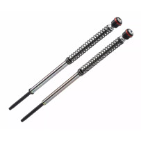 High-performance rear shocks with 7075-T6 aluminum construction, radial piston design, anti-block and anti-fading systems, 50/30 click rebound/compression adjusters, and progressive spring with threaded preload. Tunable for solo or occasional two-up riding.