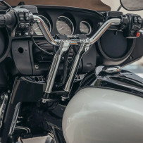 Billet-aluminum risers with carbon-fiber cover plates; hides wiring and accepts 1/2"-13 bolts. Made in the USA.