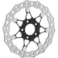 Improves braking performance and style; includes rotor, caliper adapter and all hardware for an easy bolt-on upgrade. Fits HD FLT Touring models with spoke-mounted rotors.