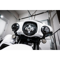 Clean, low-profile bezels that sculpt to the headlight and add fang-shaped LED running lights. Includes hardware for plug-and-play installation and easy removal for service.