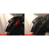 Gives the Breakout the Night Rod look and lowers the headlight approx. 30 mm. Requires soldering to the original wiring harness. Adjustable via slot; mounts to original breakpoints.
