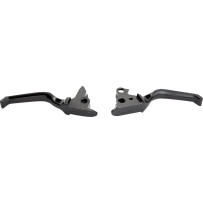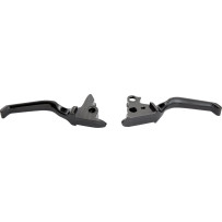 Performance-inspired hand levers with ergonomic shaping, reduced length, backside cutouts, and a smooth machined finish. Includes throttle and clutch levers.