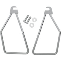 Chrome-plated supports keep throw-over saddlebags clear of the brake caliper and swingarm; includes mounting hardware, sold in pairs.