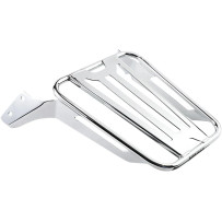 Detachable wrap-around luggage rack with rear kick up and multiple tie-down points. Mounting hardware included. Made in the USA. Not compatible with Harley-Davidson mounting kit. Check opening measurements if using aftermarket seats other than Saddlemen or Lucky Daves.