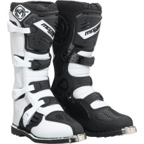 Durable off-road enduro boots with reinforced plates, steel-shank support, adjustable closure strap, moisture-wicking lining, and rugged rubber outsole.