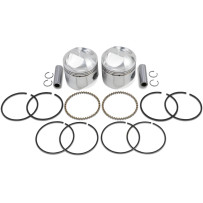 Forged high-silicon aluminum piston kit including rings, retainer clips and chrome piston pins for reliable top-end rebuilds.