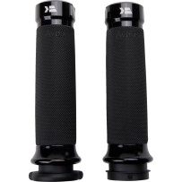 Seamless rubber grips with billet end caps; closed-end, throttle-by-wire compatible. Made in the U.S.A.