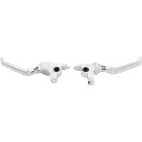 Forged shorty levers with ergonomic shape and reduced-weight cutouts; CNC-machined from billet aluminum; includes throttle and clutch levers.