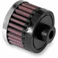 One-piece crankcase vent filter with a steel base and chrome or black rubber top. Measures 50.8 mm (2") dia x 38.1 mm (1.5") H. Available with or without mounting stud.